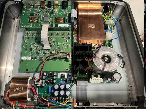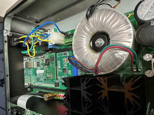 With an upgraded pure copper AC inlet, Silver input wiring, Our discrete 5 Volt regulator, A 50% larger pre regulator cap. Upgraded post regulator cap, Additional post regulator cap, Hand-picked transformers.